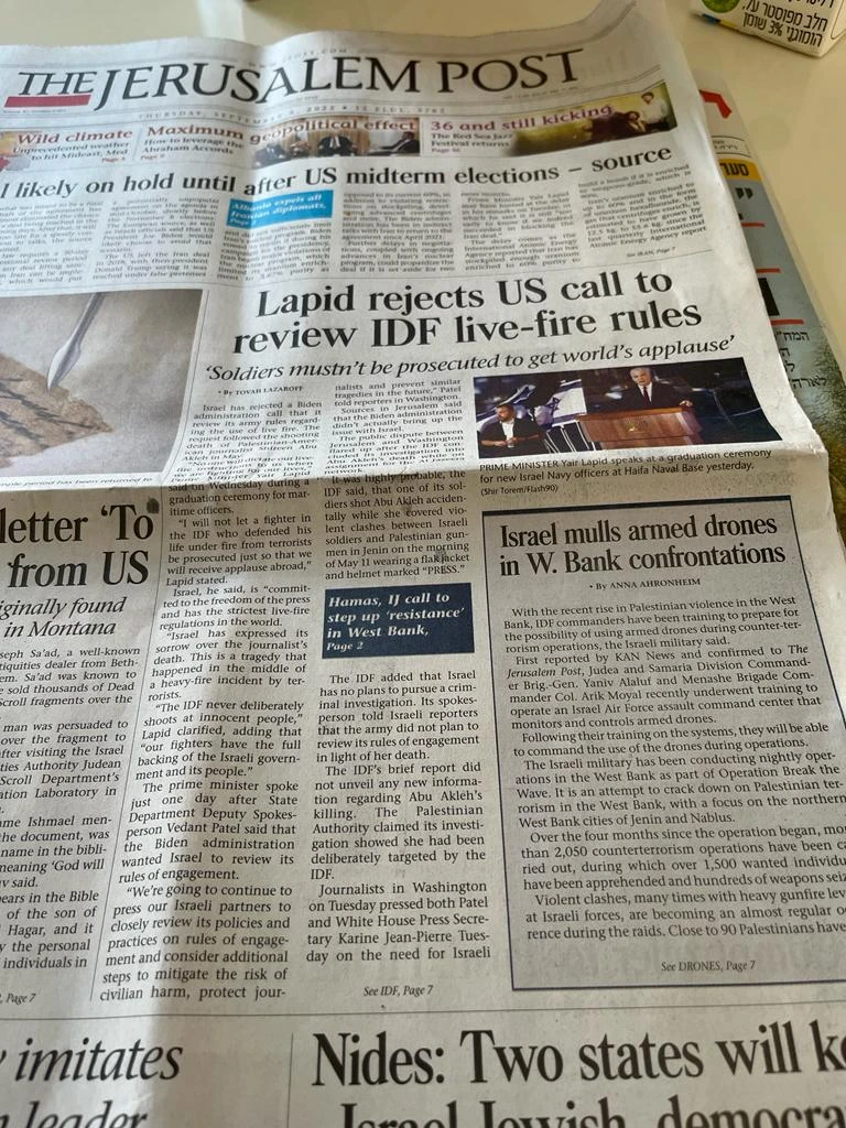 As a result, the Biden administration has recommended that the military review its rules of engagement, specifically as it relates to “live fire.” The Israeli response by IDF commanding officers came swiftly and unapologetically by stating, “In a dangerous situation, a soldier will not stop, open a document and check whether it’s permitted or forbidden to shoot.” This quote by IDF officers was the lead headline in today's Hebrew newspaper, Yedioth Ahronoth.