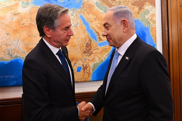 After the one-on-one meeting, Blinken participated in an expanded meeting with Netanyahu and senior officials, including Israeli Strategic Affairs Minister Ron Dermer, IDF Secretary Brig.-Gen. Roman Gofman, political advisor Ophir Falk and hostage point-man Gal Hirsch. U.S. Ambassador Jack Lew also participated in the meeting.