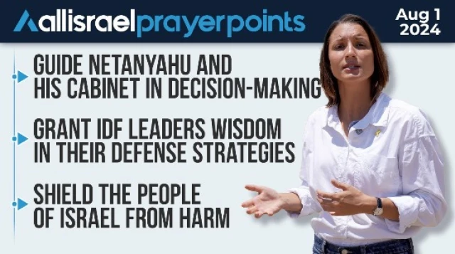 Good afternoon, I'm Kayla Sprague, and welcome to our ALL ISRAEL Prayer Points for August 1st.