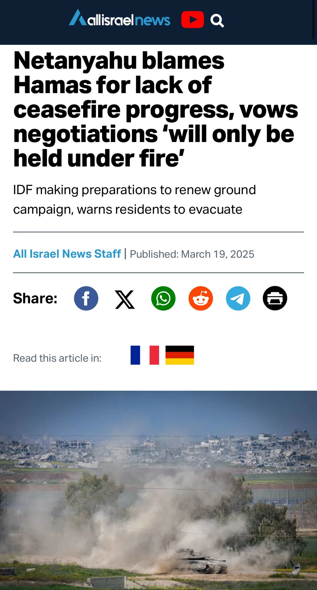 ROSENBERG: Well, we've been warning about this for weeks now on ALL ISRAEL NEWS — which you can find at www.allisraelnews.com. While I do live in Israel – I live in Jerusalem – I'm in Indianapolis right now because I was interviewing and having lunch today with former Vice President Mike Pence. So, I'm not home. I'm on this book tour for THE BEIJING BETRAYAL. But I've been warning that we [Israelis] were going back to war – and the reason is because Hamas does not want to give us back all the remaining hostages. There are 59 hostages. We believe that 24 of them, or so, are still alive. The rest are dead bodies, killed by Hamas. The problem is that we always knew that we were going to get to a point where Hamas would not deal. Why? Because once they give us all the final hostages back, they know we are going to destroy them, unless they negotiate some pathway to leave Gaza forever and never come back. So, this is a challenge. Now, Israeli Prime [Benjamin] Netanyahu and his government want every hostage back – and we have been very grateful for President Trump and his special envoy, Steve Witkoff, who negotiated the deal that has gotten all the Phase One hostages out. We're very grateful to the President and to Steve Witkoff for this. But Trump and Witkoff have been trying now for weeks to get a new deal – actually, to extend this [Phase One] deal – to get all the rest of the hostages back. [But] Hamas has said no – twice – and Netanyahu said, “You know, look, I'm not going to sit around and just not fight [Hamas] while we continue negotiating and they keep saying no.” I thought, Jody, that this [decision to go back to full-scale war in Gaza] might not happen for another month or so – after Ramadan, maybe after Passover – but Netanyahu decided to take the gloves off and strike when Hamas least expected it.