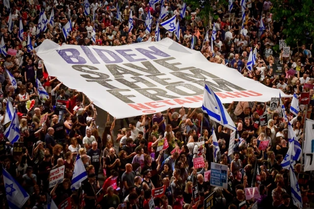 On Saturday night, there was praise among the protesters for U.S. President Joe Biden for his latest hostage deal proposal, and an unfavorable comparison was made between him and Netanyahu.