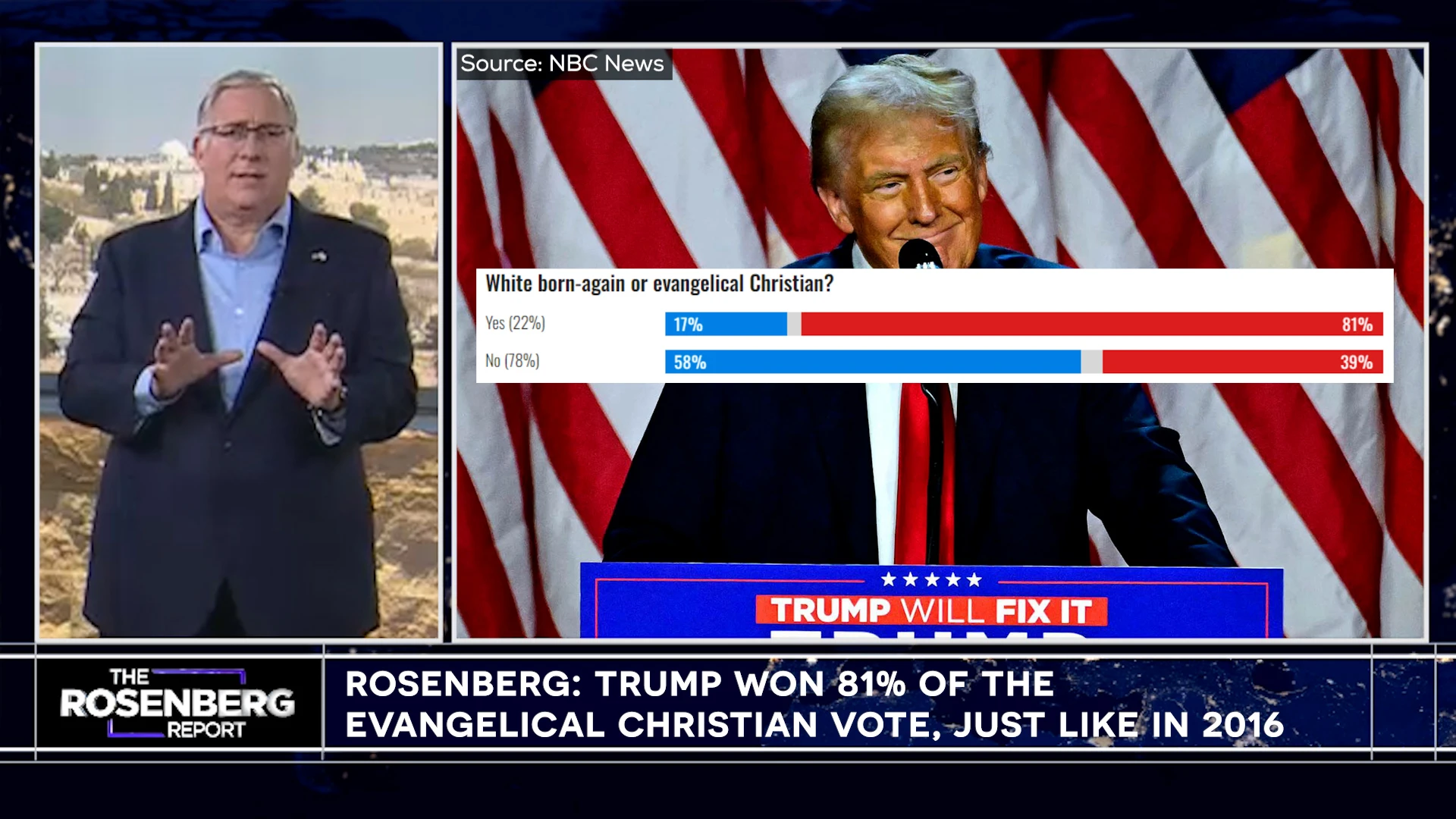 In accordance with the tendency in Israel, Rosenberg noted that Americans who want to see more U.S. support for Israel overwhelmingly voted for Trump, according to exit polls published by NBC News. That includes 81% of the Evangelical Christian vote – the same percentage he won in 2016.
