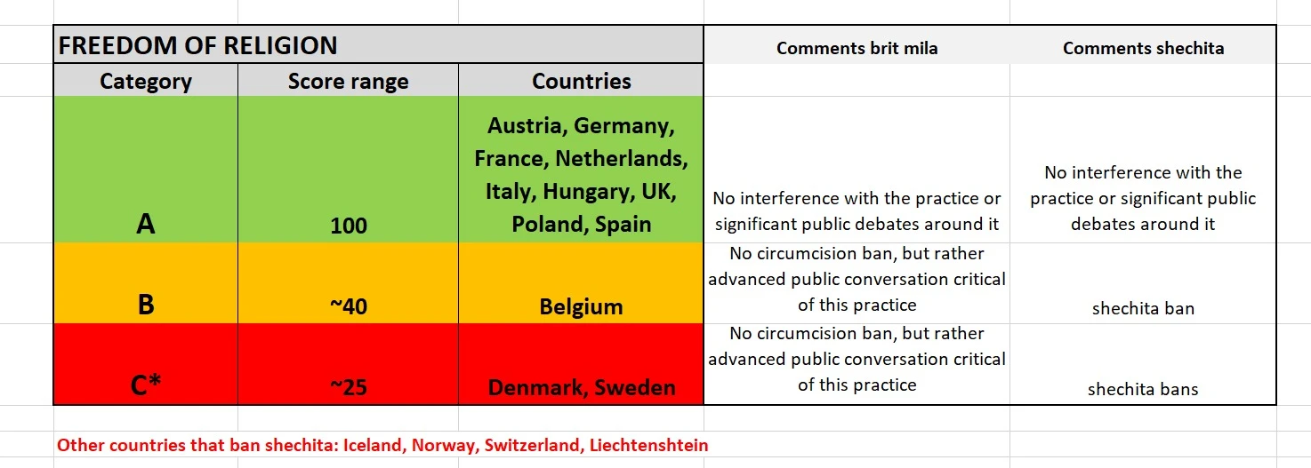 Overall, the survey looked at eight aspects of Jewish life: Budget for the security and protection of Jewish institutions; budget for support of Jewish culture, education and houses of worship; whether or not the state has adapted the International Holocaust Remembrance Alliance (IHRA) definition of anti-Semitism; policies around Holocaust commemoration; if an official was assigned the responsibility of fighting anti-Semitism on behalf of the state; if official systems are in place to monitor anti-Semitic incidents; religious freedom, such as around circumcision and ritual slaughter; and how the state votes in the United Nations on issues condemning the State of Israel.