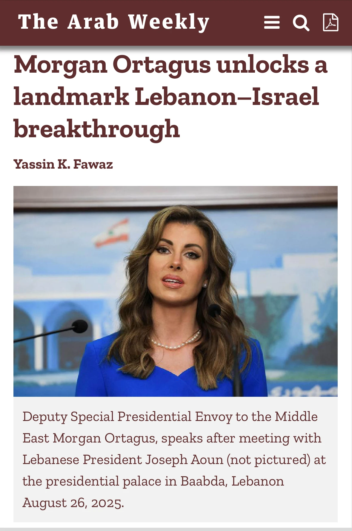 “A strong supporter of the Abraham Accords, he views Lebanon’s inclusion as essential to regional stability and economic reconstruction.”