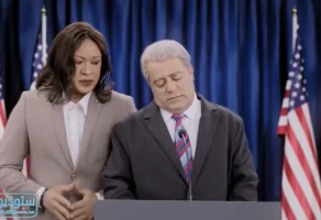 Saudi actor playing President Joe Biden falls asleep during a speech, mumbles and acts confused